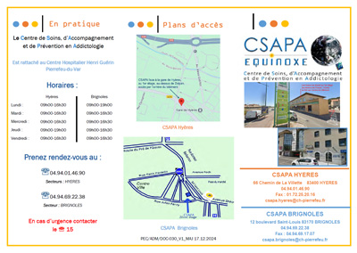 Les familles, les proches et les professionnels peuvent également trouver au CSAPA un soutien ou des informations générales sur les addictions.